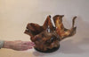 This intriguing, 100% unique, food safe irregular 25.5 inch branching root-bowl sculpture began as salvaged driftwood found on a sandy Pacific Ocean beach in Oregon. It has flared, branching sides and smooth golden-brown colors with maroon / mahogany tinges. Inside, the smooth bottom of the bowl is extra unique due to its small maroon and black obsidian rock chips which have been covered with clear epoxy. The bowl is 14.75 inches tall x 25.5 x 19 (~8” deep inside). It weighs 12 lbs.