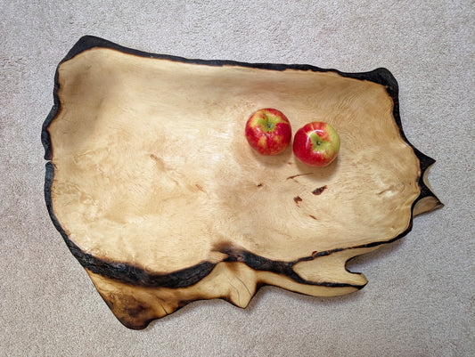 wooden serving tray platter, forest fire-scarred, Ponderosa pine 200+ yr old growth tree, live edge, irregular, natural tan brown, rich grain, 6"T x 28.5", one-of-a-kind, 607-B