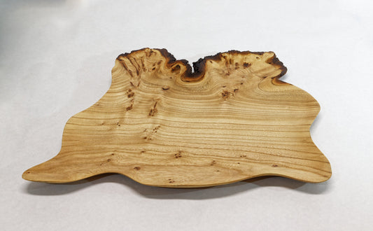 Irregular elm wood platter, wall hanging, tabletop sculpture burl, live edge bark, 1.75 tall x 17.75 long x 15 inches wide, Wabi Sabi 312-ZA