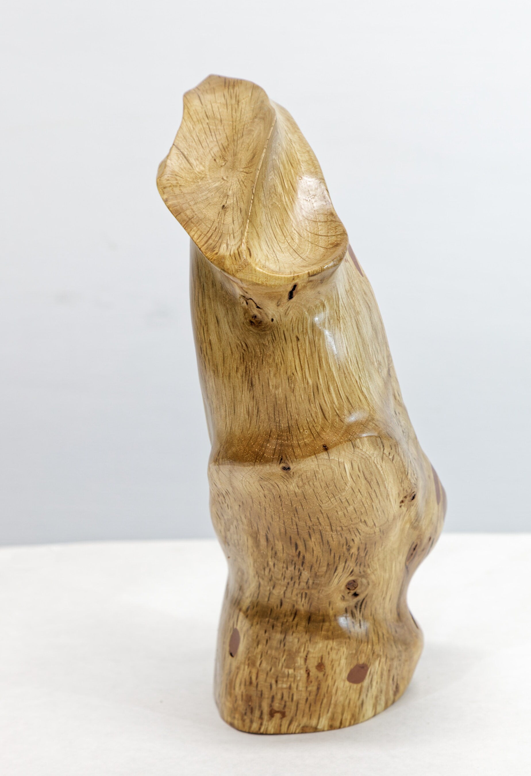 2. The wood for this sculpture was cured until it reached a moisture content like that in most homes. In some pieces, natural cracks have been filled and others have been retained to enhance the sculpture's design. Occasionally, over time, cracks may change since indoor humidity levels vary considerably (e.g., residence, office, area of the country).
