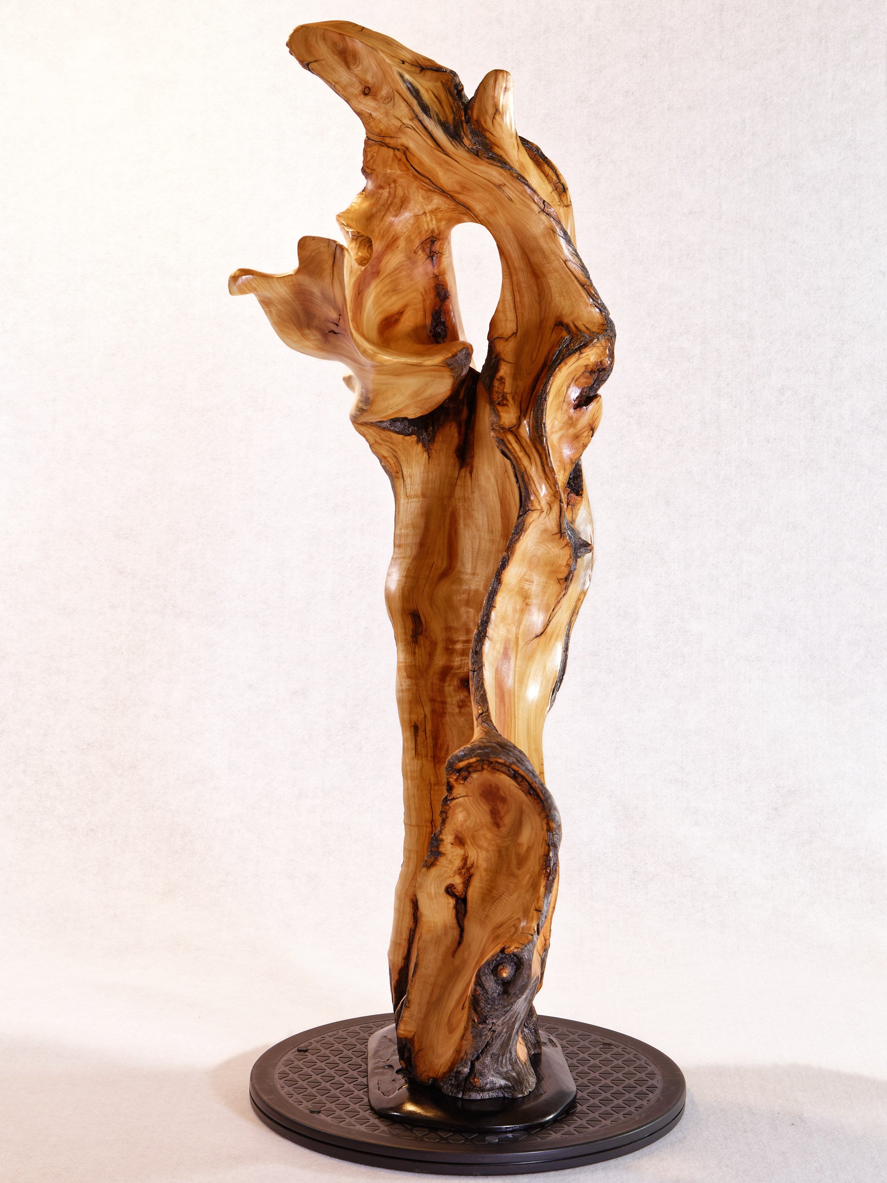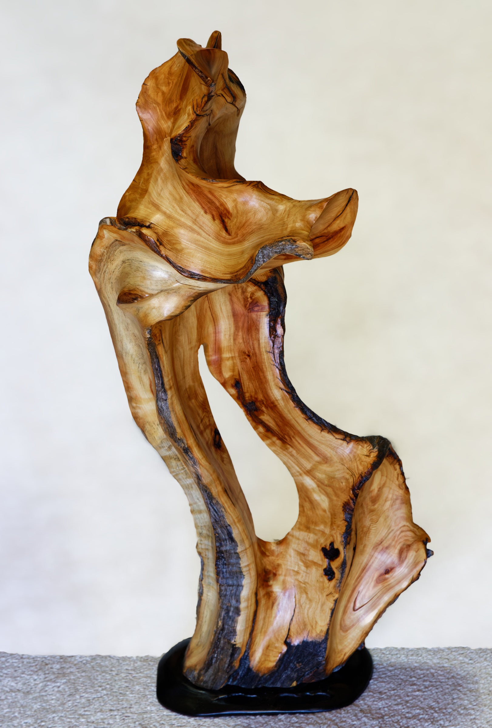 … A smooth, satin, oil based finish seals this sculpture and enhances its wood's natural colors and beauty.